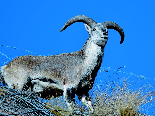 素有“高山王者”之称、常活跃在山巅崖壁上的岩羊也下山了。看到记者一行乘坐的车辆,它们开始在几米外的路边高速奔跑,竟不落下风。