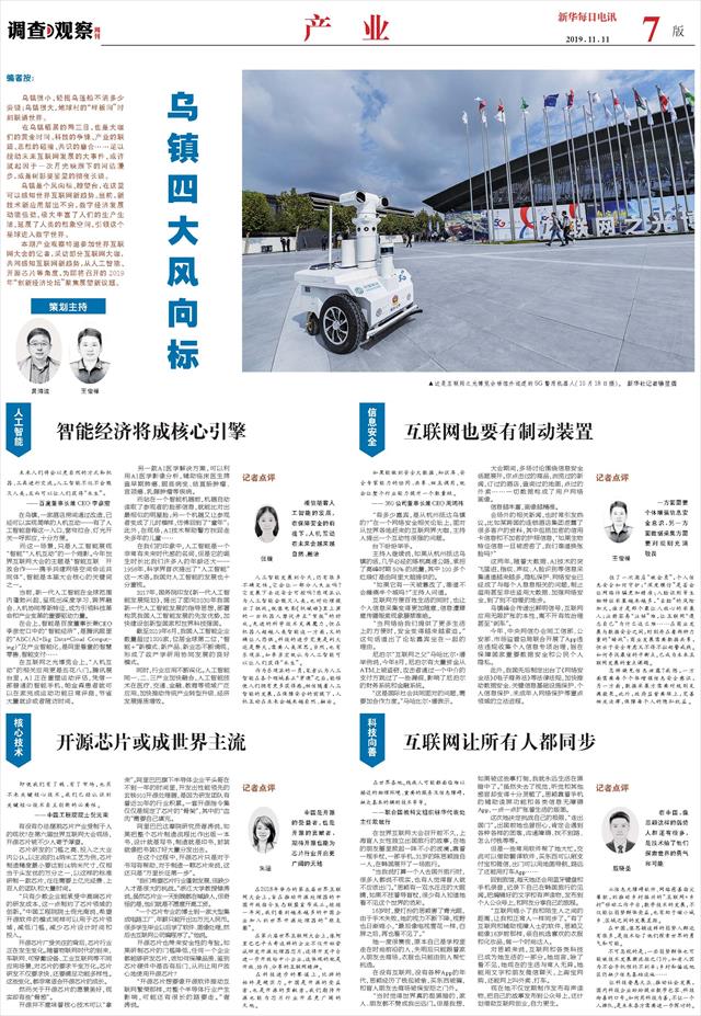 本期产业观察特邀参加世界互联网大会的记者,采访部分互联网大咖,共同感知互联网新趋势,从人工智能、开源芯片等角度,为即将召开的2019年“创新经济论坛”聚焦展望新议题。
