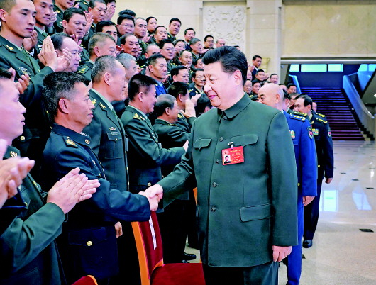 11月8日至10日,中央军委基层建设会议在北京召开。中共中央总书记、国家主席、中央军委主席习近平出席会议并发表重要讲话。这是习近平亲切接见会议代表。    新华社记者李刚摄