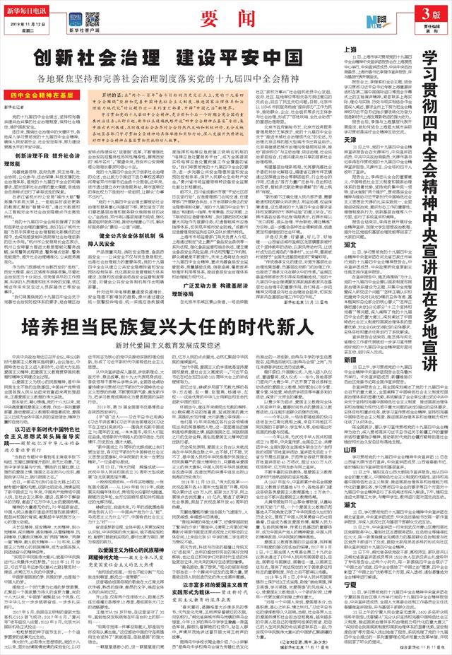 | ( 2019-11-12 ) 稿件来源:新华每日电讯 要 闻 |