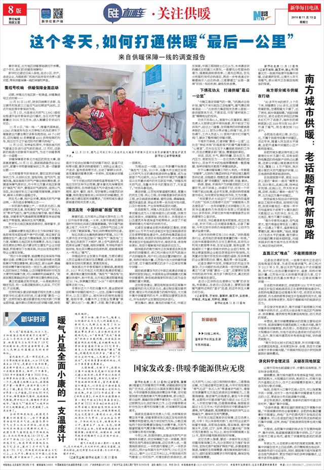 | ( 2019-11-13 ) 稿件来源:新华每日电讯 民生直通车·关注供暖 |