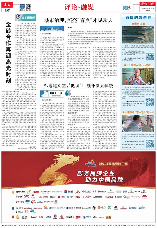 ( 2019-11-14 ) 稿件来源:新华每日电讯 要 闻