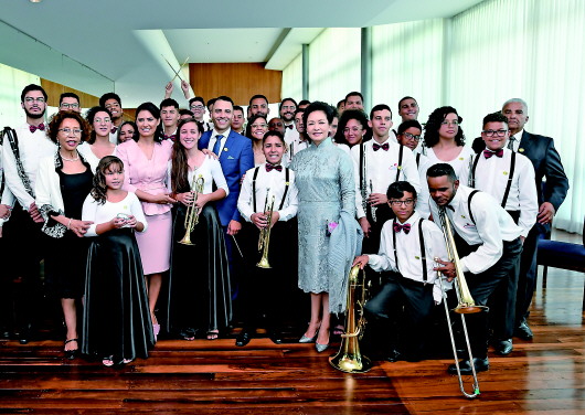 彭丽媛和南非总统夫人莫采佩在米歇尔陪同下参观了巴西总统官邸黎明宫。彭丽媛同米歇尔和莫采佩亲切寒暄、合影留念,共同观看巴西青少年管乐团表演,并同演员们亲切交流。彭丽媛表示,今天的活动使我充分感受到巴西文化艺术的独特魅力。中巴虽相隔万里,但友好深入人心。今年恰逢中巴建交45周年,双方举行了一系列文化庆祝活动,受到两国人民欢迎和喜爱。希望双方不断扩大文化交流互鉴,进一步拉近两国人民心灵的距离,让中巴友谊之树万古长青。