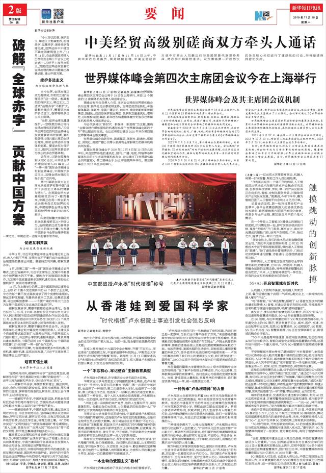 | ( 2019-11-18 ) 稿件来源:新华每日电讯 要 闻 |