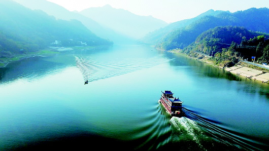 这是11月16日无人机拍摄的皖南新安江山水画廊。 新华社记者张端摄