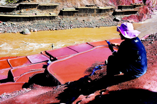 背水桶变成了抽水机,盐田成了景区。老房子开起了藏家乐,格松江错今年旅游收入有3万元。一包包土盐成了独具特色的纪念品。26岁的拉姆说,自己每天负责将家里生产的土盐进行销售,还开发了新用途。“红色的可以泡脚,消除疲劳。”15元一包,游客争相购买。
