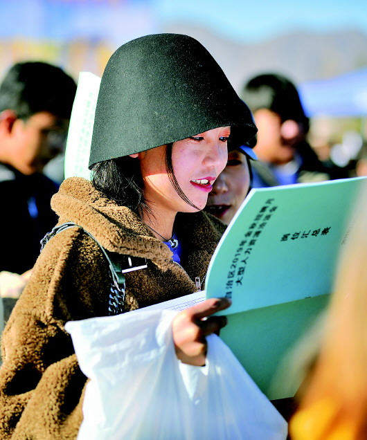▲11月18日,求职人员在查看招聘会准备的岗位汇总表。当日,一场大型人力资源洽谈会在拉萨举办,共吸引205家用人单位参加,提供各类岗位3500余个。 新华社记者晋美多吉摄 |