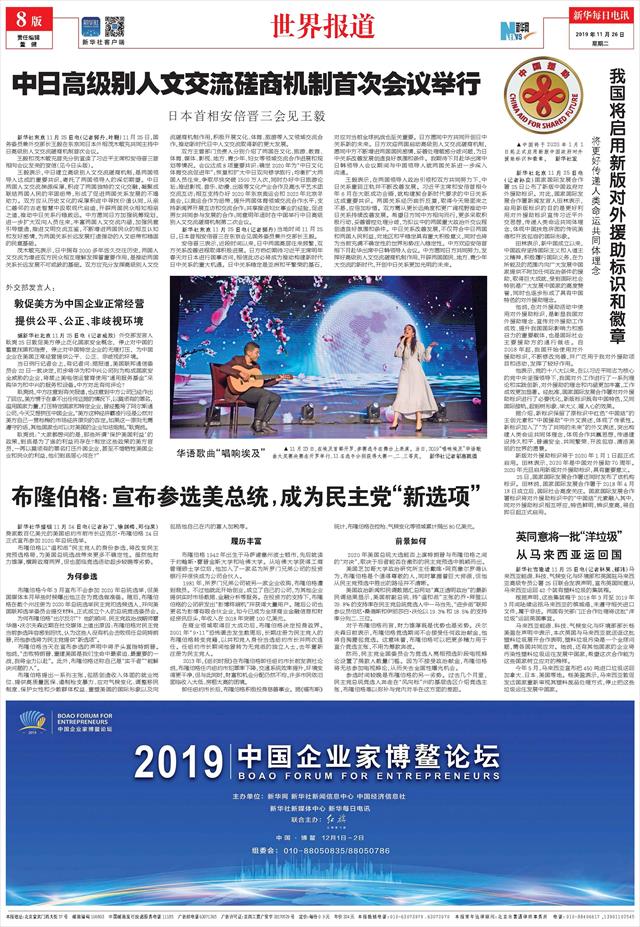 | ( 2019-11-26 ) 稿件来源:新华每日电讯 世界报道 |