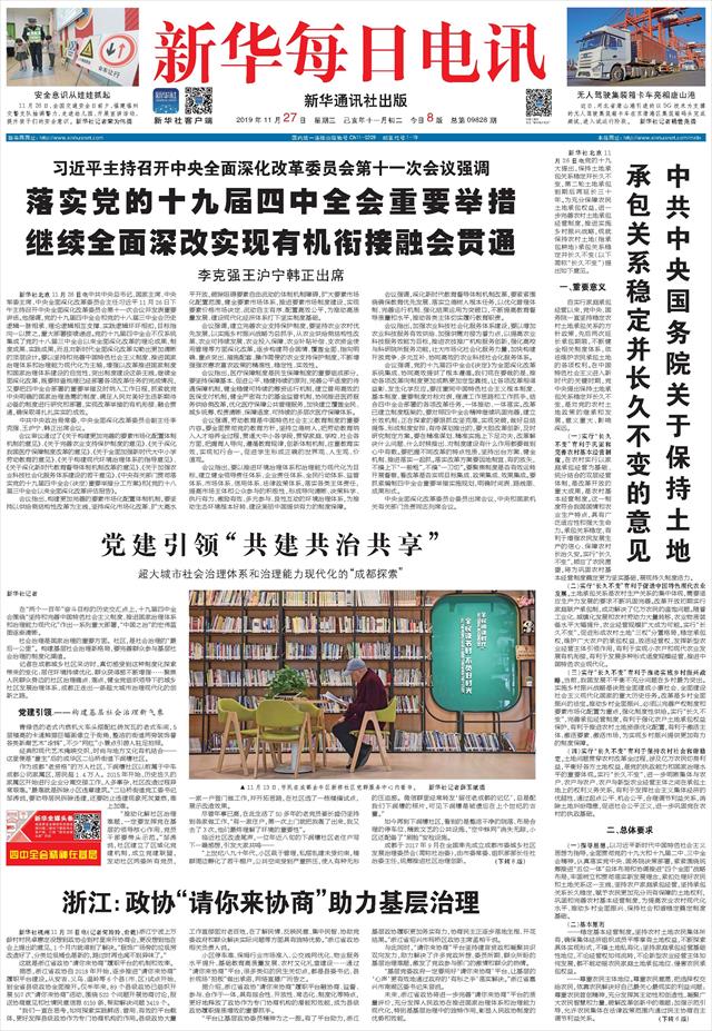 | ( 2019-11-27 ) 稿件来源:新华每日电讯 要 闻 |