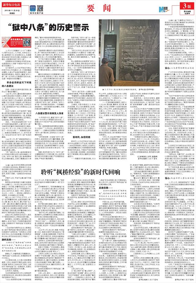 “‘狱中八条’正在新时代党的建设中发挥着新的作用。”重庆红岩革命历史博物馆讲解员刘帅说,“狱中八条”已经成为重庆各级党组织、党员开展主题教育的重要课程,融入新时代全面从严治党、培育党内风清气正良好政治生态的大潮中。