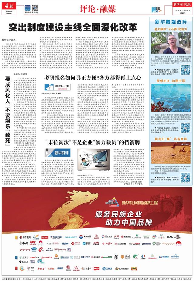 | ( 2019-11-28 ) 稿件来源:新华每日电讯 评论·融媒 |