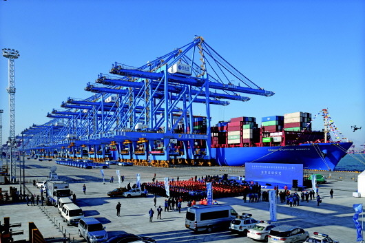 11月28日,山东港口青岛港全自动化码头(二期)投产运营。该项目推出了6项全球首创科技成果。 新华社记者李紫恒摄