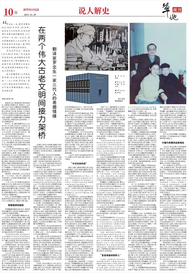 近日,82岁的罗锦鳞在北京家中接受《新华每日电讯》记者专访,回顾一家三代人与希腊文化、戏剧的不解之缘。