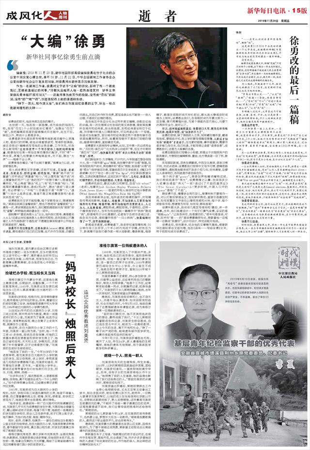 | ( 2019-11-29 ) 稿件来源:新华每日电讯 成风化人·逝者 |