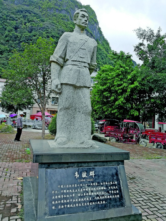 ▲位于广西东兰县武篆镇的韦拔群雕塑。 |