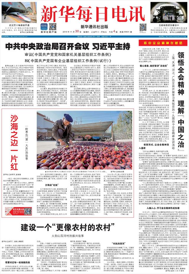 ( 2019-11-30 ) 稿件来源:新华每日电讯 要 闻
