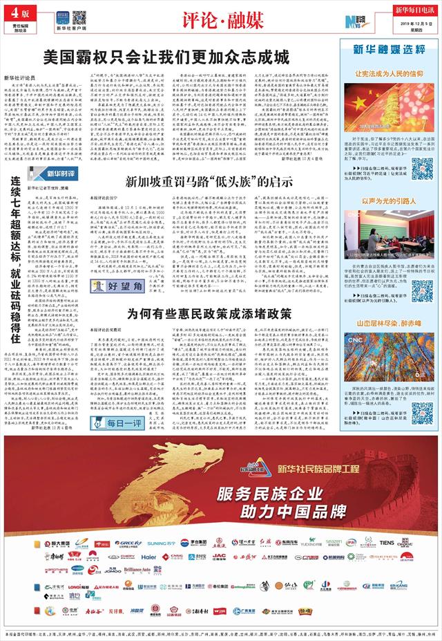 | ( 2019-12-05 ) 稿件来源:新华每日电讯 评论·融媒 |