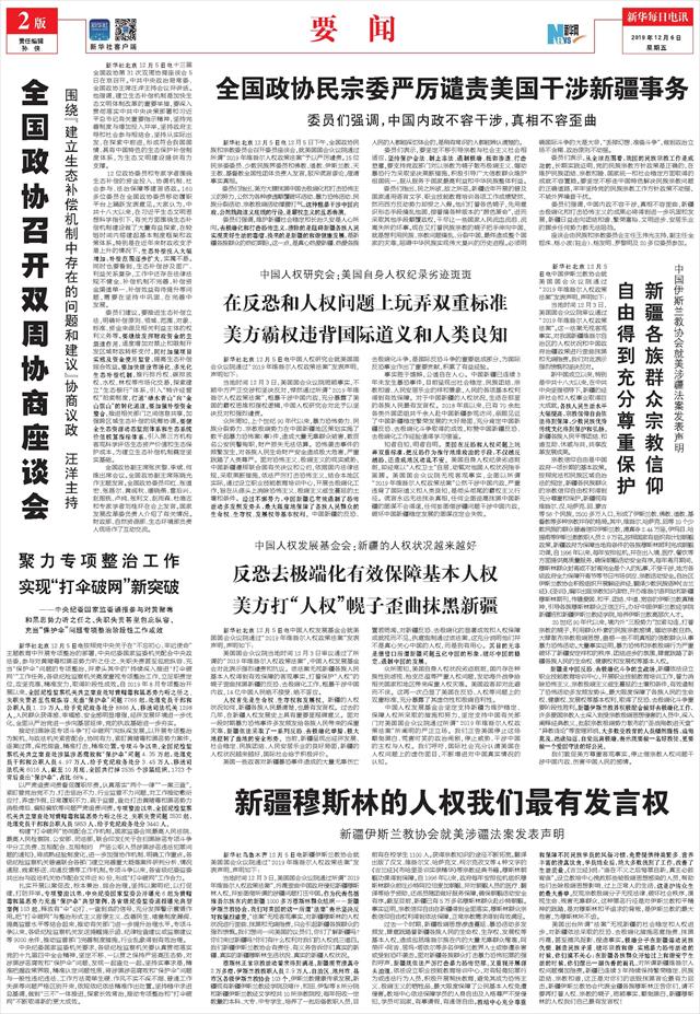 新华社北京12月5日电中国人权研究会就美国国会众议院通过“2019年维吾尔人权政策法案”发表声明,声明如下:
