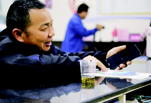 ▲党群服务中心给一位办事居民捧上热茶(11月13日摄)。 新华社记者谢锐佳摄