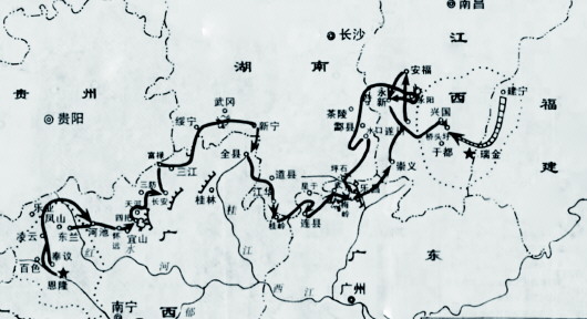 1930年11月,根据中央指示,红七军主力离开右江根据地,踏上了北上与中央红军会合的漫漫长路。