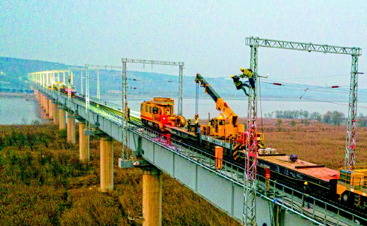 12月7日,位于晋陕交界处的南同蒲铁路黄河风陵渡铁路桥完成电气化改造,测试列车时速由25公里提升至85公里。 新华社记者陶明摄