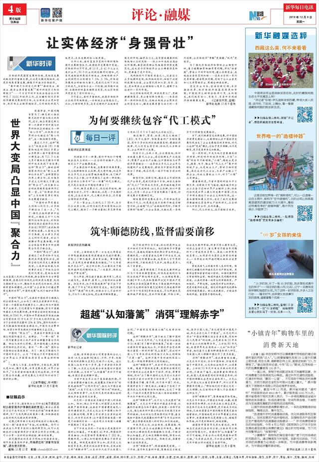 | ( 2019-12-09 ) 稿件来源:新华每日电讯 评论·融媒 |