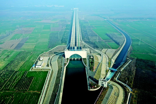 这是12月9日拍摄的南水北调中线总干渠沙河渡槽工程。该工程位于河南鲁山县境内,单槽重量大、最大高度高,架设难度极大。 新华社记者冯大鹏摄