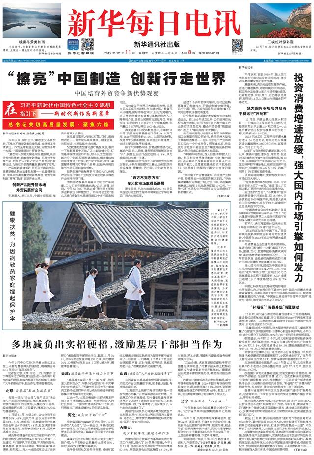 | ( 2019-12-11 ) 稿件来源:新华每日电讯 要 闻 |