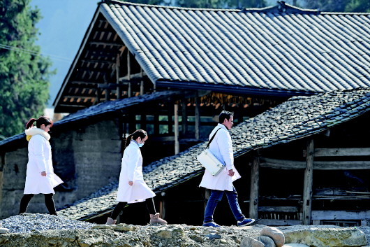 12月10日,重庆市石柱土家族自治县中益乡卫生院的医护人员来到中益乡盐井村,对贫困户进行病情随访和健康指导。