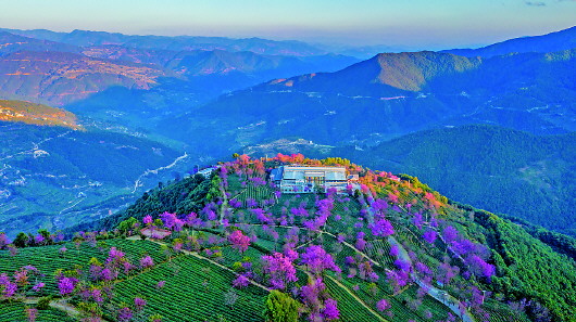近日,位于云南省南涧县的无量山樱花谷迎来最佳观赏期,如云似霞的樱花与碧绿如染的茶园交织在一起(12月10日摄)。 新华社记者胡超摄