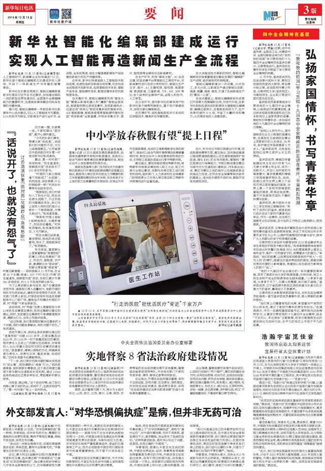 | ( 2019-12-13 ) 稿件来源:新华每日电讯 要 闻 |