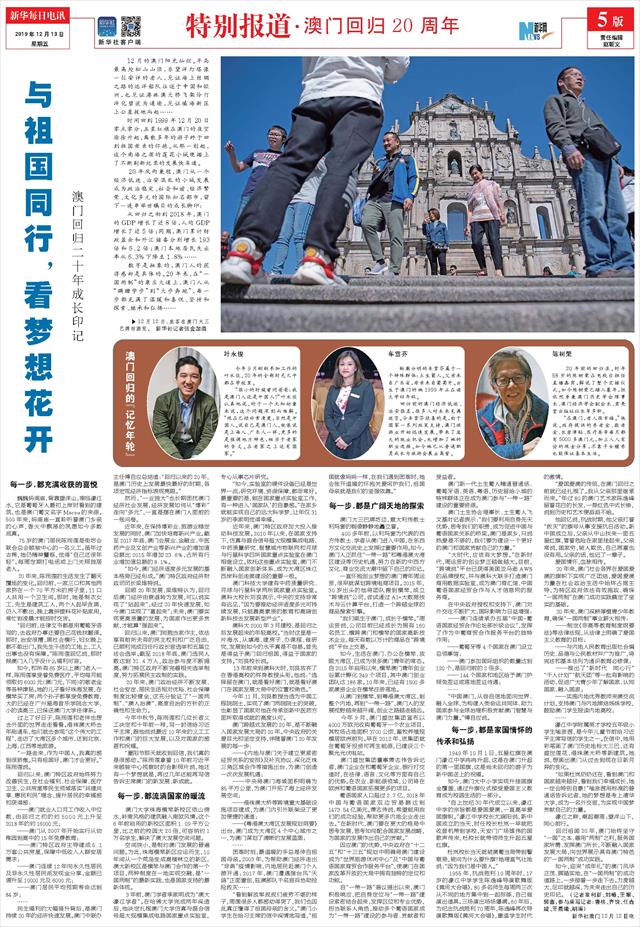 数字是抽象的,澳门人的获得感却是具体的。20年来,在“一国两制”的康庄大道上,澳门人从“蹒跚学步”到“大步奔跑”,每一步都充满了温暖和喜悦、坚持和探索、继承和弘扬……