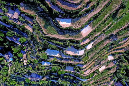 ▲南岭村陶家自然村的集雨场(7月4日无人机拍摄)。