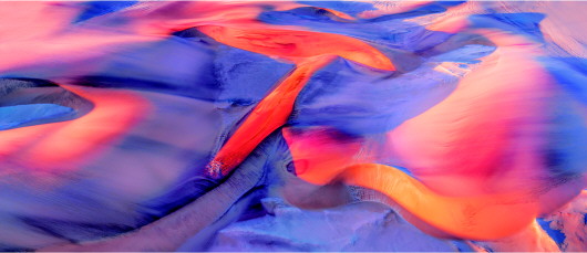 有一年到冰岛,罗红感觉就像是远离了地球,火山、冰川、黑沙滩,都带着异星的气息。“直升机飞临火山口上空时,我让飞行员低一点,再低一点!不断上升的炽热气流和有毒气体,让直升机内警报大作,在按下快门的最后一刻,我才让飞机掉头离开。”罗红说。