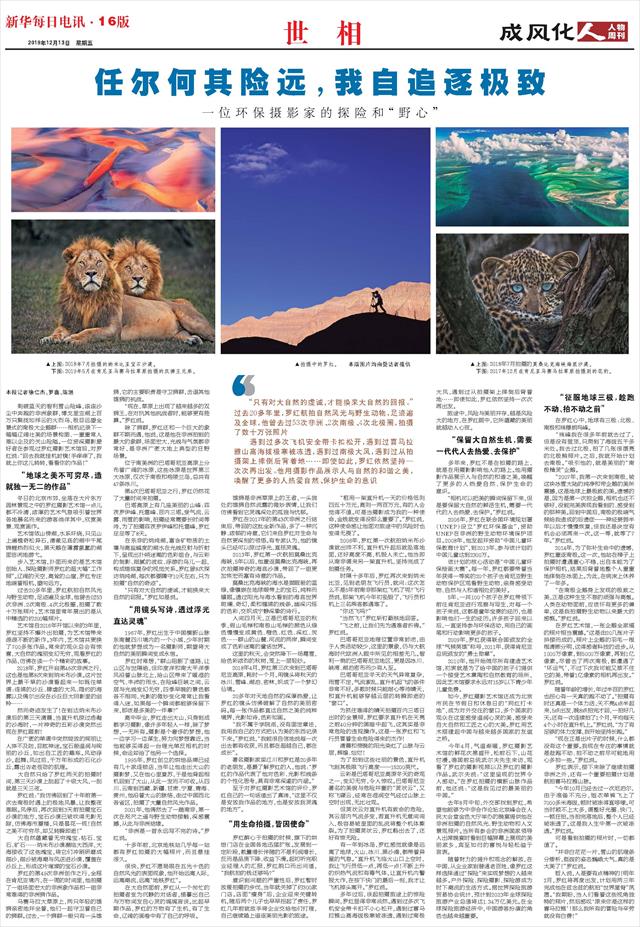 “租用一架直升机一天的价格低则四五十万元,高则一两百万元,有的人会觉得不值。可是当摄影成为我的一种使命,金钱就变得没那么重要了。”罗红说,这种使命感让他面对旅途中的风险时也变得无畏了。