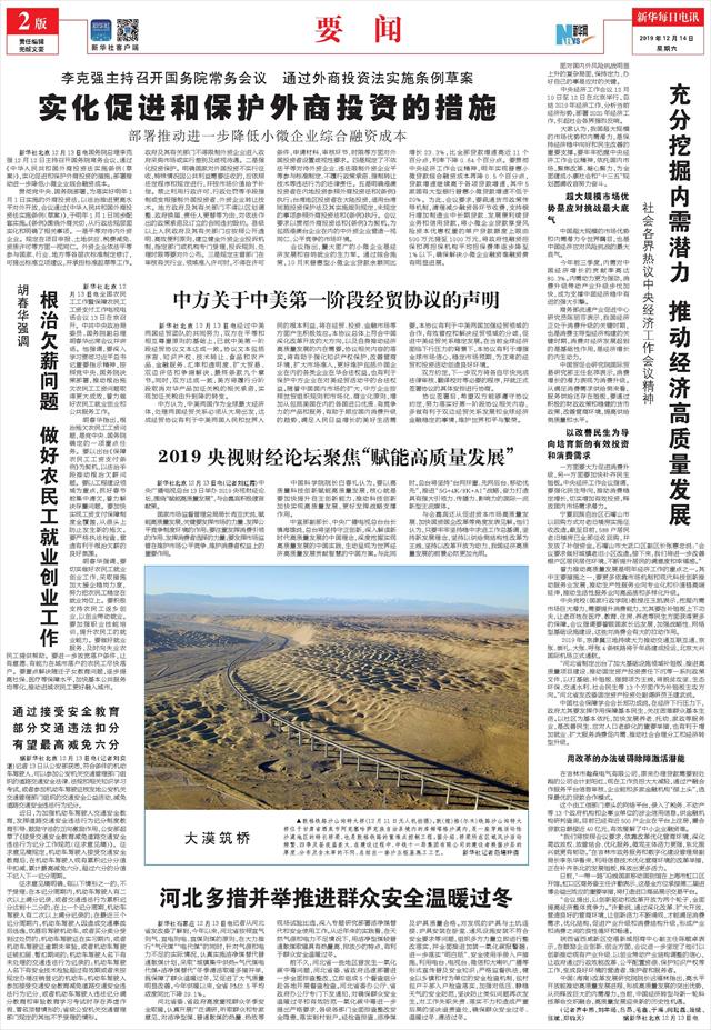 ( 2019-12-14 ) 稿件来源:新华每日电讯 要 闻