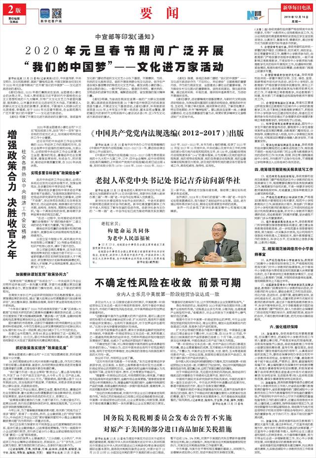( 2019-12-16 ) 稿件来源:新华每日电讯 要 闻