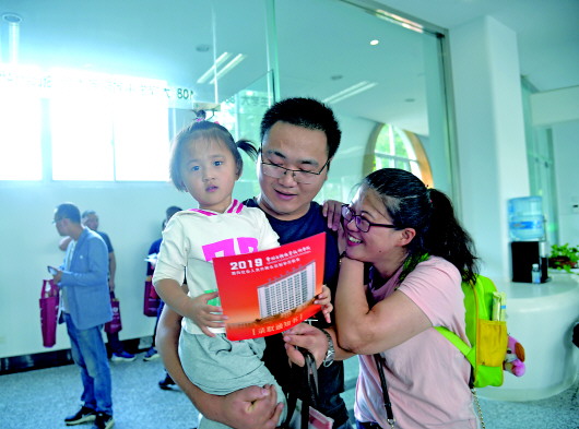 ▲9月21日,常州工程职业技术学院报到现场,一名社会生和妻子女儿在一起。