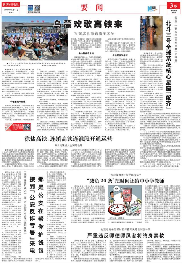 | ( 2019-12-17 ) 稿件来源:新华每日电讯 要 闻 |