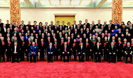 上午10时,习近平等来到人民大会堂金色大厅,全场响起热烈掌声。习近平等同代表们亲切握手,不时交谈,并同大家合影留念。