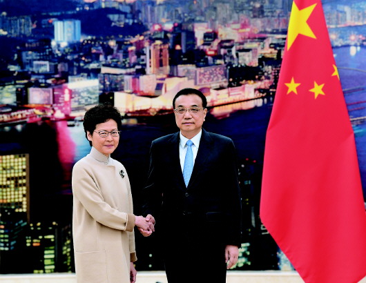 12月16日,国务院总理李克强在北京人民大会堂香港厅会见来京述职的香港特别行政区行政长官林郑月娥。