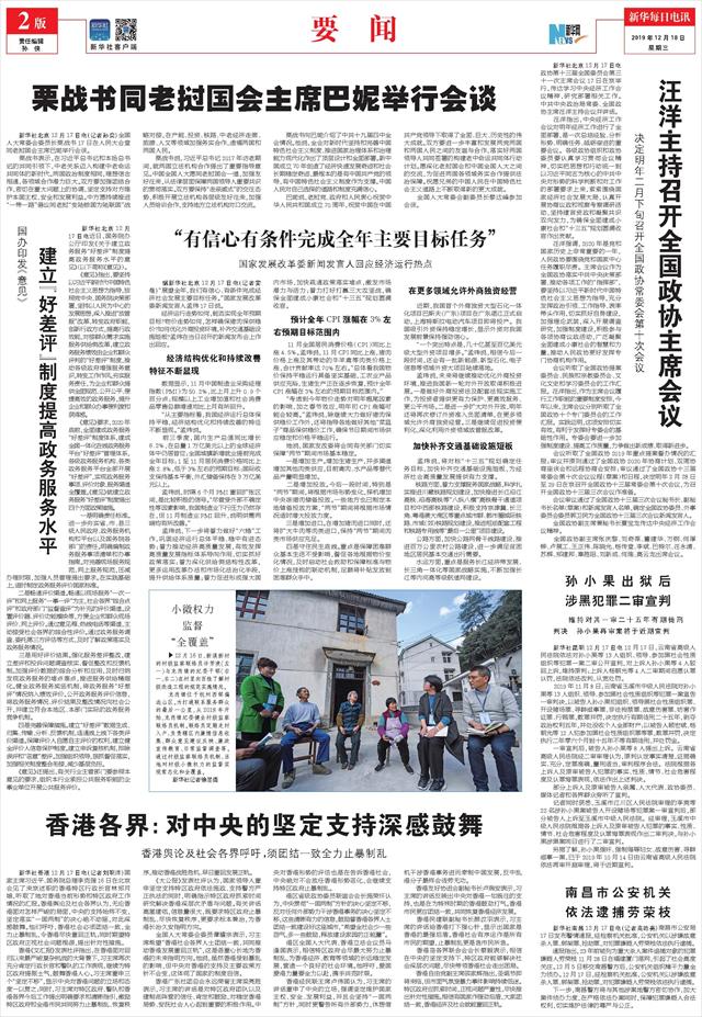 | ( 2019-12-18 ) 稿件来源:新华每日电讯 要 闻 |