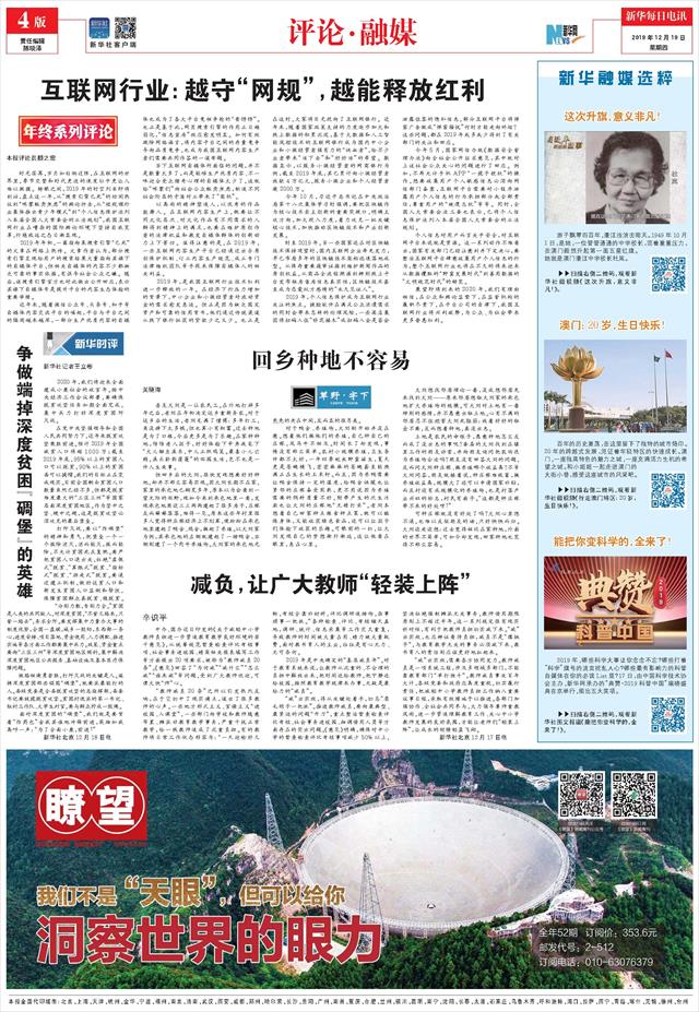 | ( 2019-12-19 ) 稿件来源:新华每日电讯 评论·融媒 |