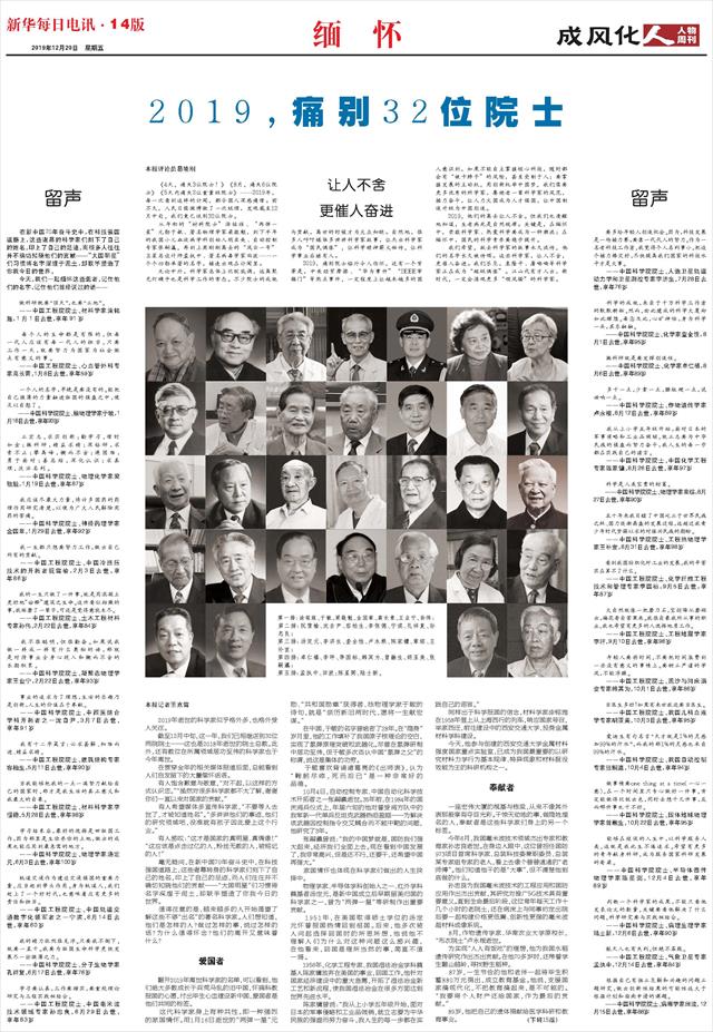 翻开2019年离世科学家的名单,可以看到,他们绝大多数成长于兵荒马乱的旧中国,怀揣科教报国的心愿,付出毕生心血建设新中国,爱国者是他们共同的标签。