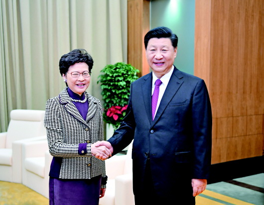 习近平表示,中央充分肯定林郑月娥行政长官在非常时期展现出的勇气和担当。林郑月娥行政长官到北京述职时,提出了香港特别行政区政府下一步工作的设想,中央都完全支持。希望香港特别行政区政府各个部门继续在行政长官领导下,各司其职,密切配合,形成合力,共同把香港的事情办好。