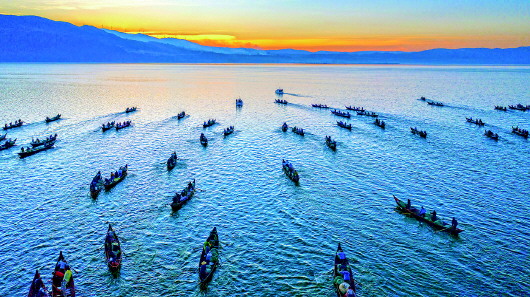12月25日,位于云南省玉溪市江川区的星云湖迎来一年一度的开湖捕鱼季,600余艘渔船驶入星云湖捕捞。 新华社记者胡超摄