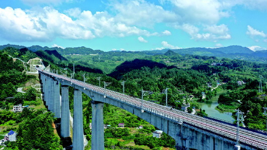 12月26日,西起重庆黔江区,东至湖南常德的黔张常铁路正式通车。 新华社发(丁洋摄)
