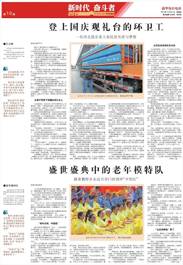 王立峰告诉记者,群众游行的“美好生活”方阵走过广场时,他看到了穿着环卫制服的同行们,“感觉来北京打工这么多年,给首都做的工作得到了认可”。
