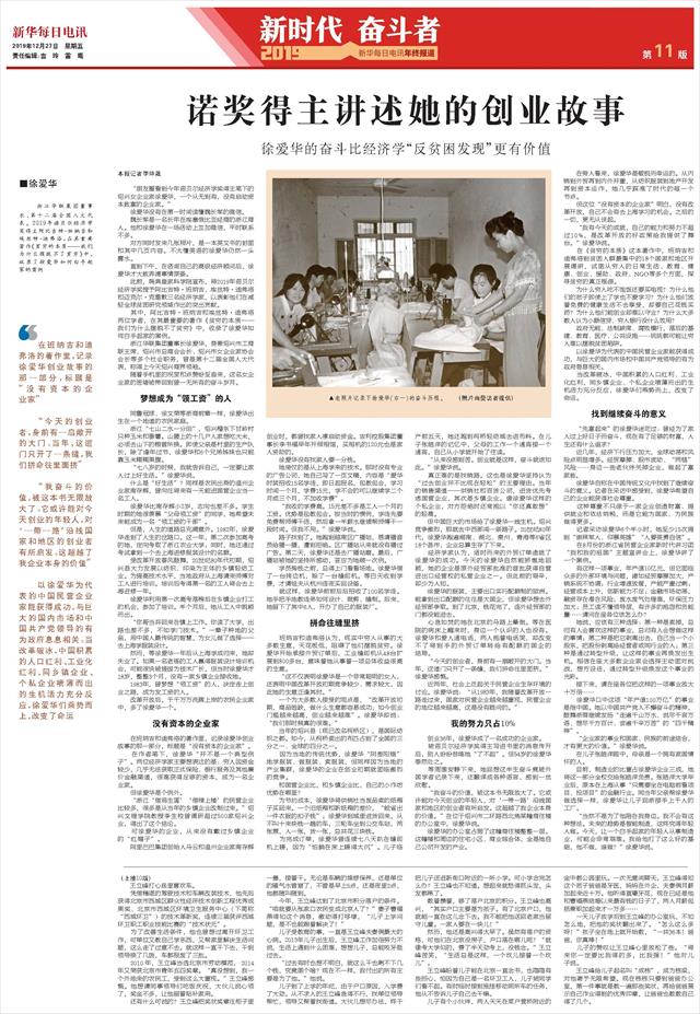 被诺贝尔经济学奖得主写进书里的消息传开后,别人纷纷恭维她“了不起”。但54岁的徐爱华泰然处之。
