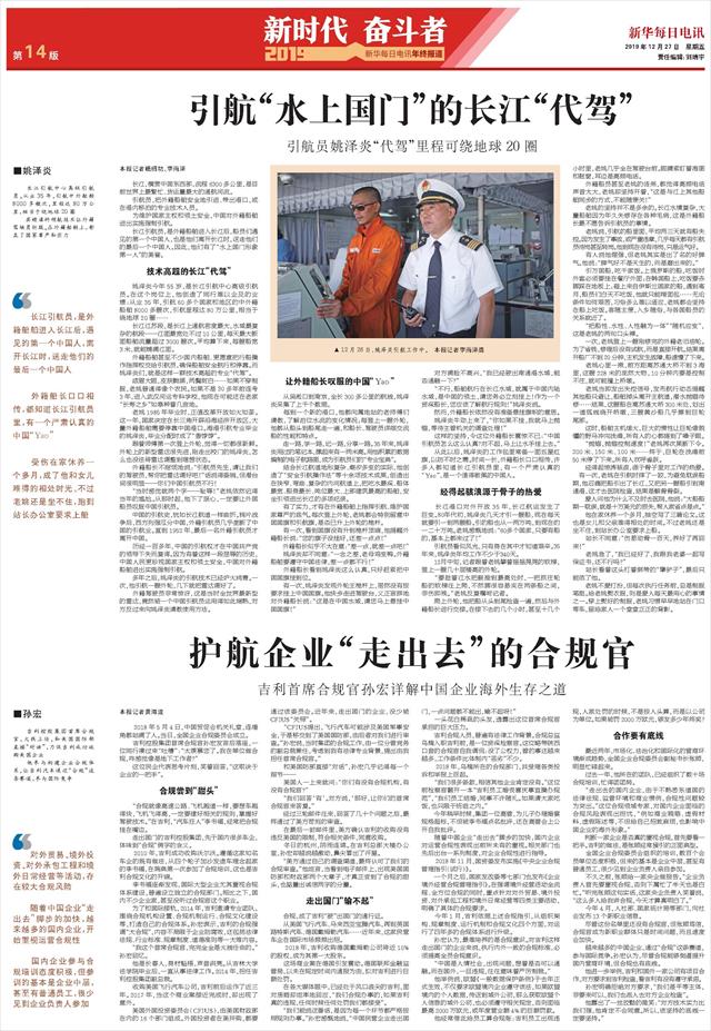 从此以后,姚泽炎的工作包里常备一面五星红旗,以防不时之需。时间一长,外籍船长口口相传,许多人都知道长江引航员里,有一个严肃认真的“Yao”,是一个值得敬佩的中国人。